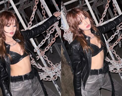 사진 속 민니는 블랙 가죽 브라 톱에 재킷을 매치한 파격적인 스타일로 시선을 사로잡았다. 체인으로 연출된 거친 무드의 공간과 어우러진 콘셉트는 민니 특유의 카리스마를 극대화했다. 민니는 과감한 스타일링에도 흔들림 없는 표정과 포즈로 완성도를 높였다.